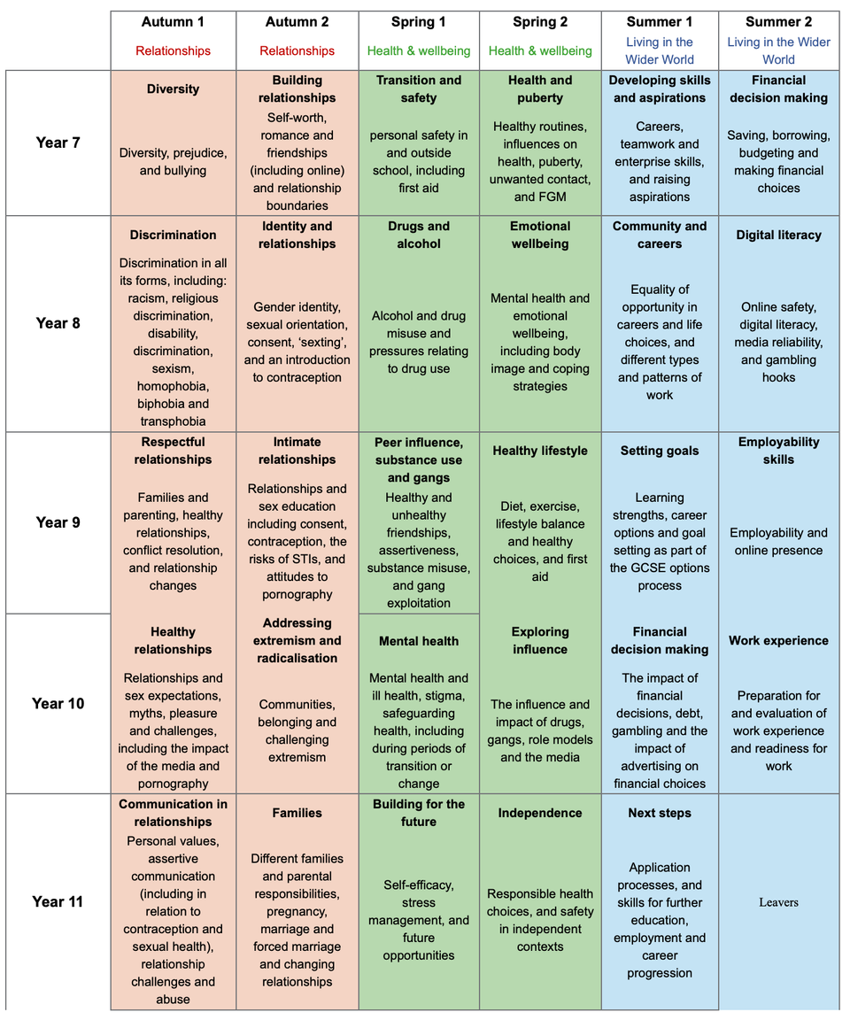 Should you request to discuss the resources prior to delivery for any element of the Personal Development Curriculum you should contact Mr G Harrisongharrison@halewoodacademy.co.uk