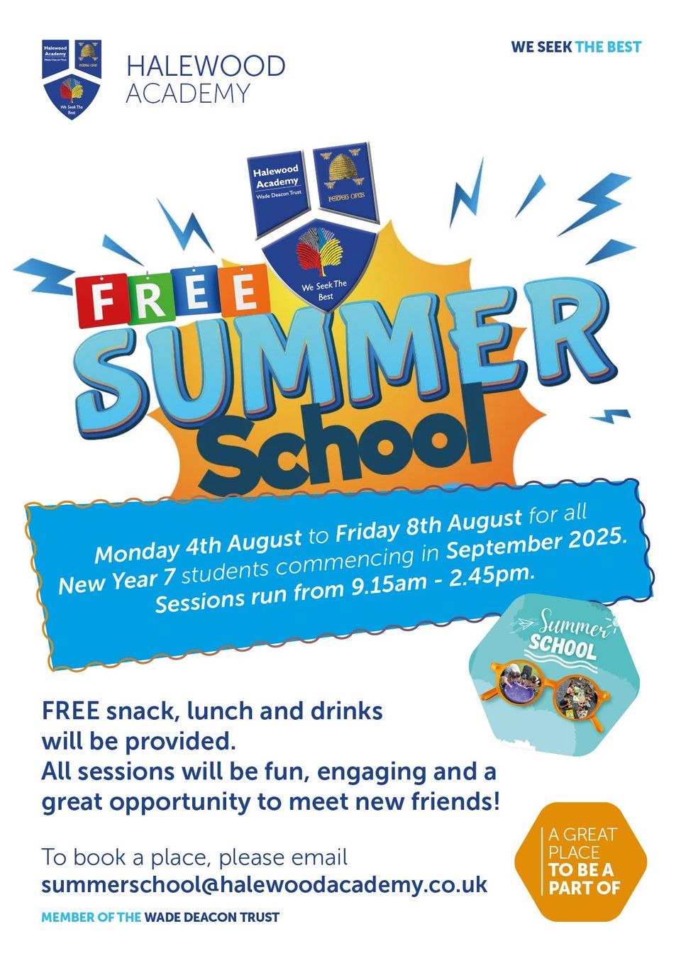 If you would like to confirm your child’s place, please reply to the following email address summerschool@halewoodacademy.co.uk